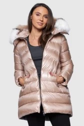 HETREGO Beżowa puchowa kurtka Holly z odczepianym kapturem