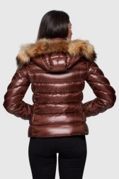 HETREGO Brązowa puchowa kurtka Holly z odczepianym kapturem