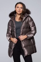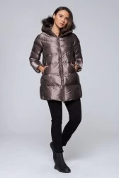 HETREGO Taupe długa kurtka puchowa Hanna z lisem