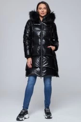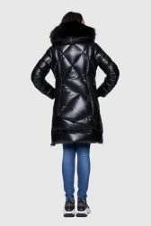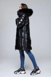 DIEGO M Czarna kurtka puchowa z futrem królika