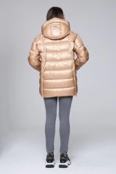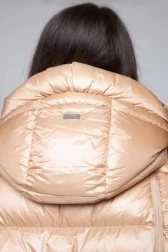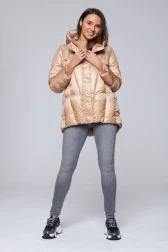 HETREGO Beżowy błyszczący płaszcz puchowy z odpinanymi rękawami summer