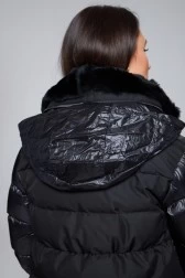 DIEGO M Czarna kurtka puchowa z futrem królika