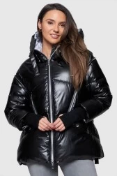 DIEGO M Czarna kurtka puchowa z odpinanymi rękawami