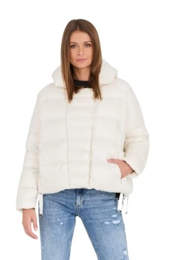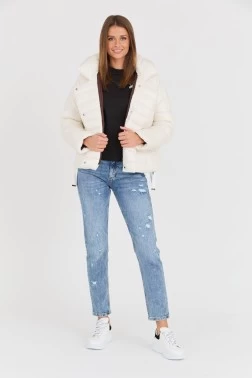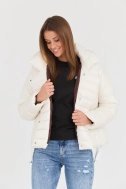 HETREGO Ecru puchowa kurtka Holly z odczepianym kapturem