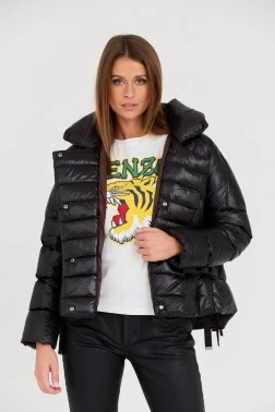 HETREGO Czarna błyszcząca kurtka damska z kapturem Muriel