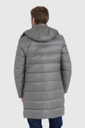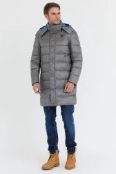 BLAUER Stalowa długa puchowa kurtka męska Gus z odpinanym kapturem