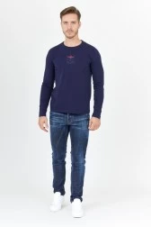 AERONAUTICA MILITARE Granatowy longsleeve męski z wyszywanym logo