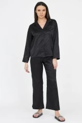JUICY COUTURE Czarne satynowe spodnie piżamowe w logo