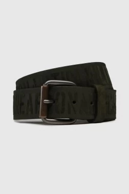 AERONAUTICA MILITARE Skórzany zielony pasek męski z wypukłymi napisami