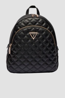 Czarny damski plecak Giully Flap Backpack marki Guess to stylowy i praktyczny dodatek wykonany z ekologicznej skóry. Plecak zamykany jest na zamek i posiada dużą zewnętrzną kieszeń na zamek oraz nóżki ochronne, które chronią jego spód. Wewnątrz znajduje się jedna przestronna komora, zasuwana kieszeń oraz dwie wsuwane kieszenie. W zestawie znajduje się worek przeciwkurzowy, który zapewnia ochronę plecaka podczas przechowywania.