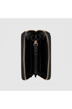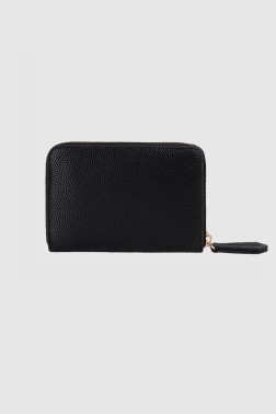 Czarny portfel damski o strukturze skóry. W zestawie lusterko w etui.