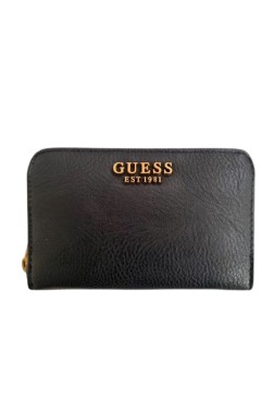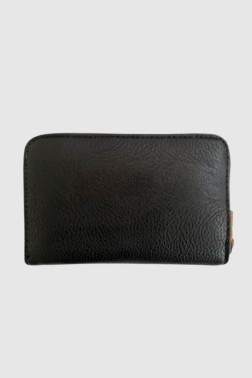 Damski średni portfel Arja w kolorze czarnym. Zamykany na zamek, w środku posiada dwie komory, przegrodę na banknoty, zasuwaną kieszeń na bilon oraz 6 miejsc na karty.