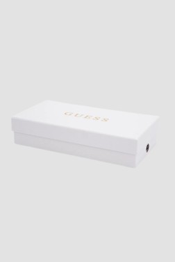 Damski portfel "Adi Slg Cheque Organizer" marki Guess. Zamykany na zamek, wewnątrz zasuwana kieszeń na bilon, 2 przegrody, 16 miejsc na karty, 2 wsuwane kieszenie oraz miejsce na zdjęcia. Na zewnątrz jedna zasuwana kieszeń. Zapakowany w pudełko firmowe.