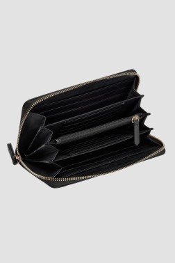 Damski czarny portfel Katong Zip Around Wallet marki Valentino. Stylowy portfel zamykany na zamek. Wewnątrz znajduje się zasuwana kieszeń na bilon, cztery przegrody, 16 miejsc na karty oraz sześć wsuwanych kieszeni. Zapakowany w firmowe pudełko.