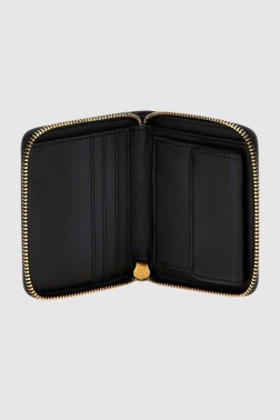 Mały damski czarny portfel Laurel SLG Small Zip Around marki Guess, we wzór skóry krokodyla. Zamykany na zamek, wewnątrz kieszeń na bilon na zatrzask, kieszeń na banknoty oraz cztery miejsca na karty. Zapakowany w pudełko firmowe.