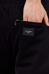 Bawełniane szorty DOLCE & GABBANA w kolorze czarnym. Z tyłu aplikacja z logo. Trzy kieszenie zapinane na zamek - dwie z przodu, jedna z tyłu. Pas ściągany  trokami zakończonymi metalowymi końcówkami.