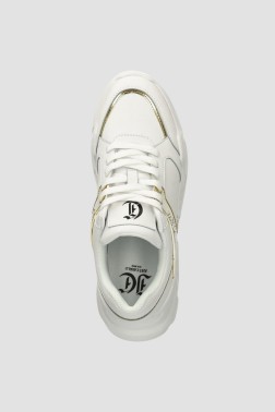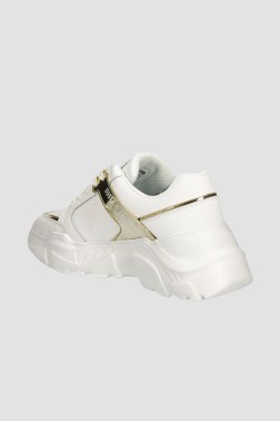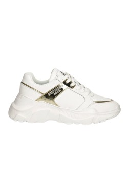 JUST CAVALLI Białe sneakersy ze złotym logo Fondo Casper
