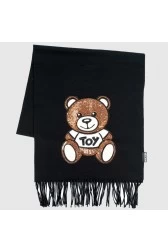 MOSCHINO Czarny szalik damski z misiem z cekinów