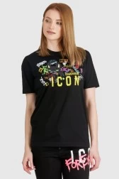 DSQUARED2 Czarny t-shirt damski z graffiti