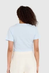 GUESS Niebieski t-shirt damski cropped fit piercing