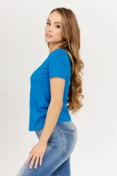GUESS Niebieski t-shirt damski z dużym trójkątnym logo
