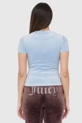 JUICY COUTURE Błękitny welurowy t-shirt z błyszczącym logo