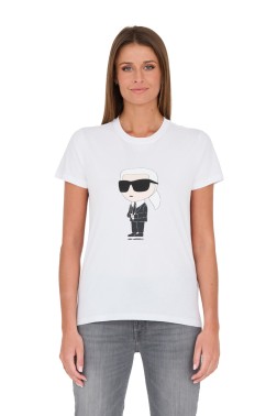 Biały bawełniany t-shirt damski marki Karl Lagerfeld.
