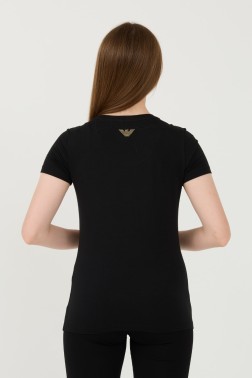Czarny damski t-shirt z cyrkoniami, marki EA7 Emporio Armani.
