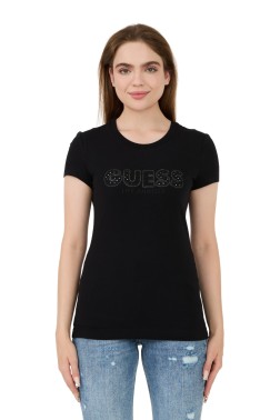 Czarny damski t-shirt Sangallo Tee, marki Guess.