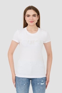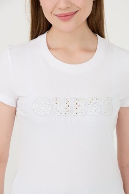 Biały damski t-shirt Sangallo Tee, marki Guess.
