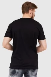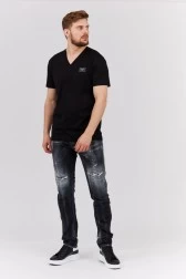 DOLCE & GABBANA Czarny t-shirt męski w serek z aplikacją z logo