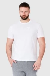 T-shirt męski EA7 EMPORIO ARMANI w kolorze białym. Na piersi aplikacja z logo w kolorze białym. Okrągły, prążkowany dekolt.
