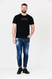 Męski t-shirt GUESS w kolorze czarnym. Z przodu czerwone logo.