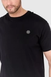PHILIPP PLEIN Czarny t-shirt z wężem na plecach z dżetów