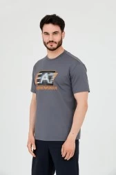 Szary t-shirt męski z ruchomym holograficznym logo.