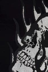 T-shirt męski czarny z czaszką w płomieniach wysadzaną dżetami.