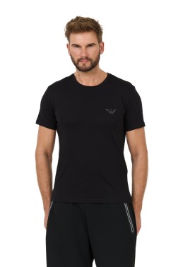 Czarny męski t-shirt logo brodé, marki Emporio Armani.