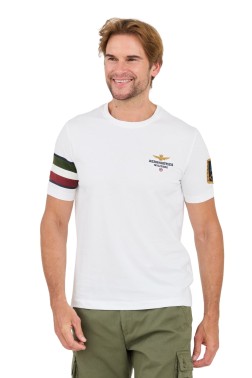AERONAUTICA MILLITARE Biały t-shirt Tricolor and badge