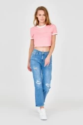 Damski krótki t-shirt w kolorze różowym z białym akcentem.