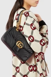 Torebka GG Marmont marki GUCCI wykonana jest z wysokiej jakości skóry naturalnej o niezwykłym wzorze w jodełkę. Z tyłu torebki znajduje się wytłoczone subtelne serce, które dodaje jej romantycznego akcentu. Torebka jest bardzo funkcjonalna dzięki solidnemu zatrzaskowi, który zapewnia bezpieczne zamknięcie. Wnętrze wyposażono w jedną kieszeń zasuwaną na zamek. Łańcuch w kolorze antycznego złota można nosić na ramieniu (55cm) lub używać jako rączek (30cm).