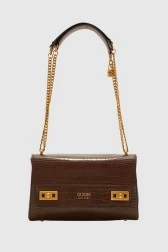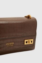 Torebka Katey Croc marki GUESS wykonana z wysokiej jakości skóry ekologicznej o teksturze skóry krokodyla, emanuje luksusem i elegancją. Jej klapa zamykana jest na dwa magnesy, wewnątrz znajduje się sześć miejsc na karty oraz jedna zasuwana kieszeń. Dodatkowo, z tyłu torebki umieszczona została wsuwana kieszeń, idealna na szybki dostęp do najpotrzebniejszych przedmiotów. Nóżki znajdujące się na spodzie torebki chronią ją przed zniszczeniem. Łańcuszek torebki pozwala nosić ją na ramieniu lub trzymać w ręku w zależności od preferencji.