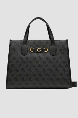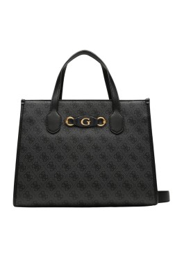 Szara torebka Izzy 2 Compartment, marki Guess. Torebka wykonana ze skóry ekologicznej, ma logowany wzór dominujący. Posiada regulowany pasek o długości 102 cm. Wysokość uchwytów: 13,5 cm. Wewnątrz znajduje się 1 komora podzielona na dwa przedziały, w środku 3 kieszenie: 2 wsuwane, 1 zasuwana. Na zewnątrz znajduje się 1 kieszeń zasuwana na zamek. Torebka posiada nóżki ochronne oraz worek przeciwkurczowy.