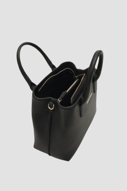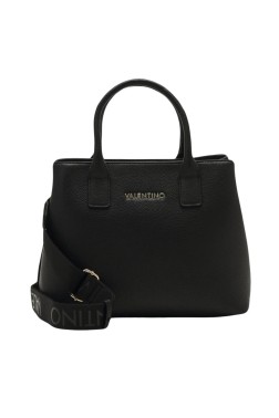 Czarna torebka Never Borsa marki Valentino, wykonana ze skóry ekologicznej, to elegancki i funkcjonalny model. Posiada jedną komorę zamykaną na zamek, a wewnątrz znajdują się dwie kieszenie zasuwane oraz dwie wsuwane, co zapewnia wygodną organizację przestrzeni. W zestawie znajduje się regulowany pasek oraz worek przeciwkurzowy, chroniący torebkę podczas przechowywania.