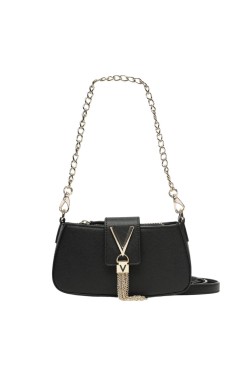 Mała kopertówka Divina SA marki Valentino by Mario Valentino. Torebka zamykana na magnes. Wewnątrz jedna kieszeń zasuwana i jedna wsuwana. Posiada dwa doczepiane paski: łańcuch 46 cm oraz regulowany pasek 115 cm. W zestawie woreczek przeciwkurzowy.