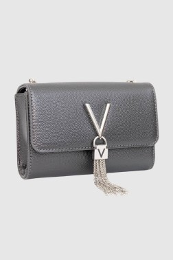 Damska torebka Divina marki Valentino by Mario Valentino. Klapa zamykana na zatrzask, wewnątrz znajduje się jedna kieszeń wsuwana i jedna zasuwana. Posiada łańcuszek o długości 118 cm.