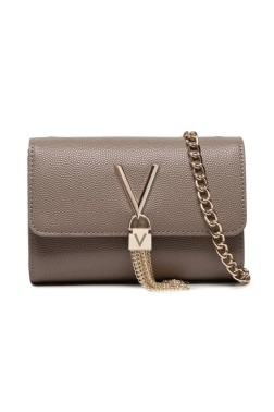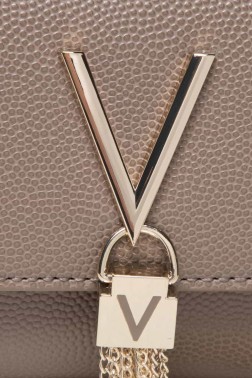 Damska torebka Divina marki Valentino by Mario Valentino. Klapa zamykana na zatrzask, wewnątrz znajduje się jedna kieszeń wsuwana i jedna zasuwana. Posiada łańcuszek o długości 118 cm.