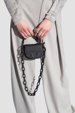 Czarna mini torebka 1DR XS marki Diesel, wykonana ze skóry naturalnej, to stylowy dodatek na różne okazje. Posiada jedną komorę zamykaną na magnes, zapewniając łatwy dostęp do wnętrza. W zestawie znajduje się nieregulowany pasek o długości 75 cm. Dodatkowo dołączony jest worek przeciwkurzowy, który chroni torebkę w czasie przechowywania.
