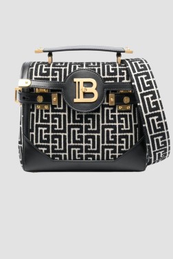 Czarny kuferek damski Classic Handle Bag M marki Balmain to kwintesencja luksusu i elegancji. Torebka wyróżnia się geometrycznym wzorem w kolorze czarno-białym, podkreślonym złotym monogramem Balmain na froncie. Wykonana z najwyższej jakości materiałów, posiada odłączalny, regulowany pasek na ramię oraz liczne złote zdobienia. Wnętrze torebki zawiera praktyczną kieszeń na suwak, a całość uzupełnia woreczek przeciwkurzowy, który chroni torebkę podczas przechowywania. Idealna dla kobiet ceniących styl i funkcjonalność.