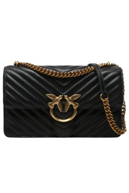 Damska torebka Love One Classic marki Pinko. Wykonana ze skóry naturalnej. Torebka zamykana na zatrzask, posiada 3 komory, z czego jedna na zamek. Wewnątrz jedna kieszeń wsuwana. Posiada regulowany pasek o długości 140 cm.