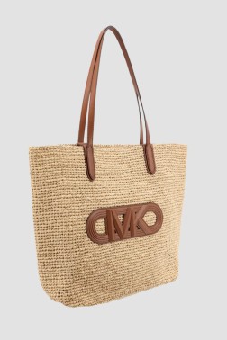 Beżowa damska torebka Xl Tote marki Michael Kors. Shopperka wykonana z rafii, posiada jedna duża komorę oraz uchwyty o wysokości 27 cm. W zestawie znajduje się worek przeciwkurzowy.